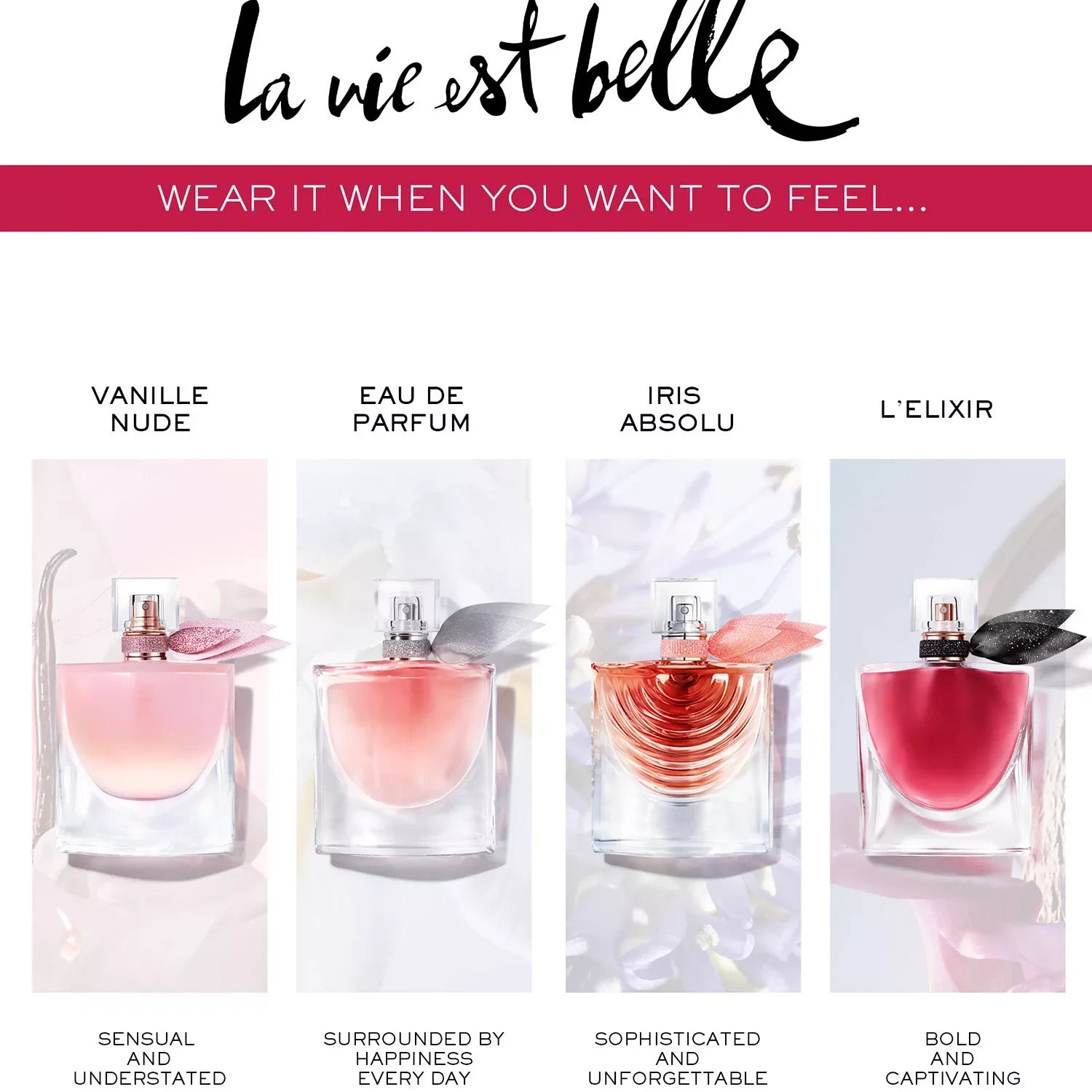 Inspired by French patisserie elegance, La Vie Est Belle Vanille Nude envelops skin in creamy indulgence. Solar jasmine and glazed vanilla blend seamlessly into a luxurious white musk base that lingers throughout the day. This sophisticated fragrance reveals an intimate, irresistible presence—a sensory escape that transforms the everyday into something extraordinary. Perfect for those who appreciate refined, gourmand florals with lasting power.