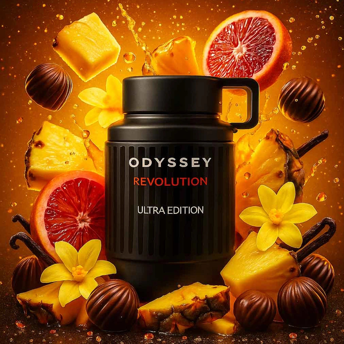 Odyssey Revolution Ultra Edition captures the essence of fearless transformation in a 3.4 oz bottle. This aromatic fruity composition opens with vibrant pineapple, black currant, and blood orange, accented by sage for an invigorating first impression. The heart reveals a sophisticated blend of praline, vanilla, plum, and cardamom that creates warmth and depth. Tonka bean and patchouli anchor the base with refined sensuality. Designed for those who challenge conventions and forge their own path, this 2025 launch delivers bold character with understated elegance—a fragrance that speaks to ambition and individuality.